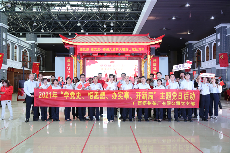 4月26日,梧州市茶產(chǎn)業(yè)發(fā)展服務(wù)中心組織全市茶人、茶企開展題為“感黨恩,跟黨走——梧州六堡茶人唱支山歌給黨聽”的聯(lián)合黨日活動(dòng)。(廣西梧州茶廠有限公司黨員代表進(jìn)場)